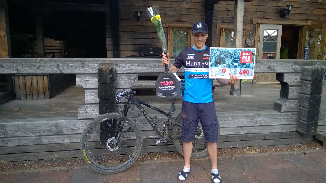 Lähdin taas itseni yllättäen kärkeen startista ja meno tuntui helpolta. Ajoin kaksi ekaa kiekkaa hieman maltilla, jotta viimeiselle riittäisi ruutia. Taktiikka onnistui ja onnistuin kasvattamaan reilun 5 min eroa neljänneksi tulleeseen Pekka Niemeen. Kunto ja jalat olivat kertakaikkiaan loistavat tänään. Meno tuntui helpolta koko ajan ja oikeasti pystyin nauttimaan kisaamisesta, jopa hiekkatiellä :) Konaisarvosana viikonlopulle 10-. Miinus tulee pelkästään siitä, että aina voi parantaa.